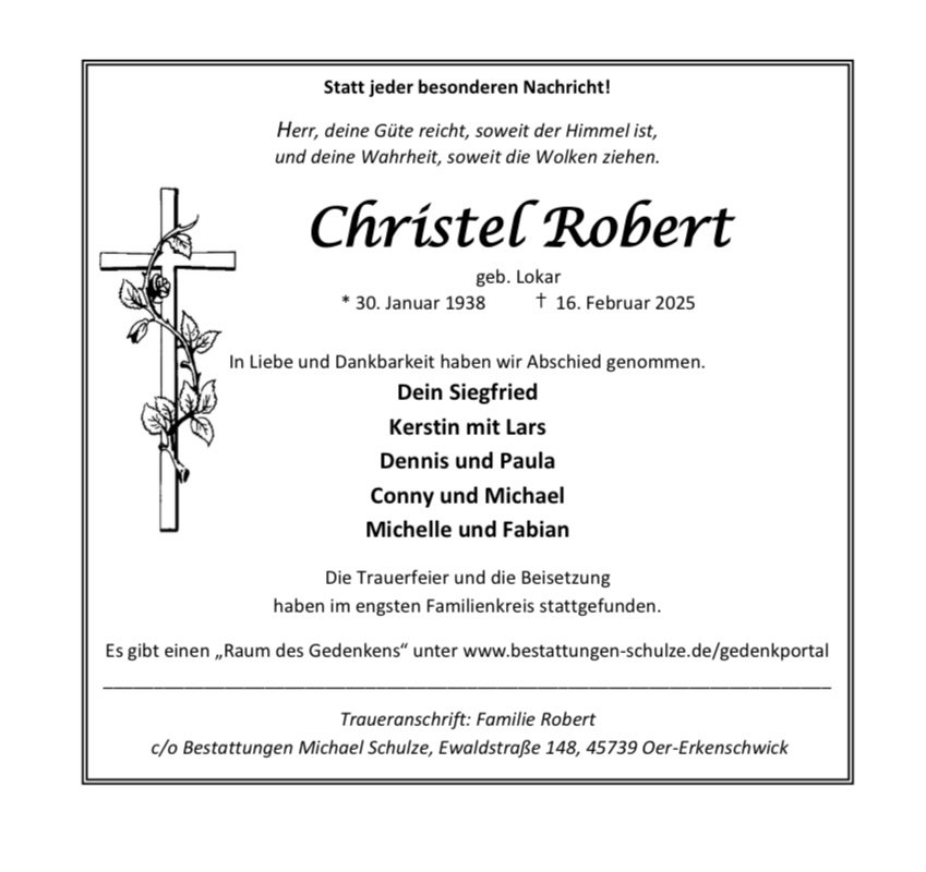 gestorben am 16. Februar 2025 in Oer-Erkenschwick
