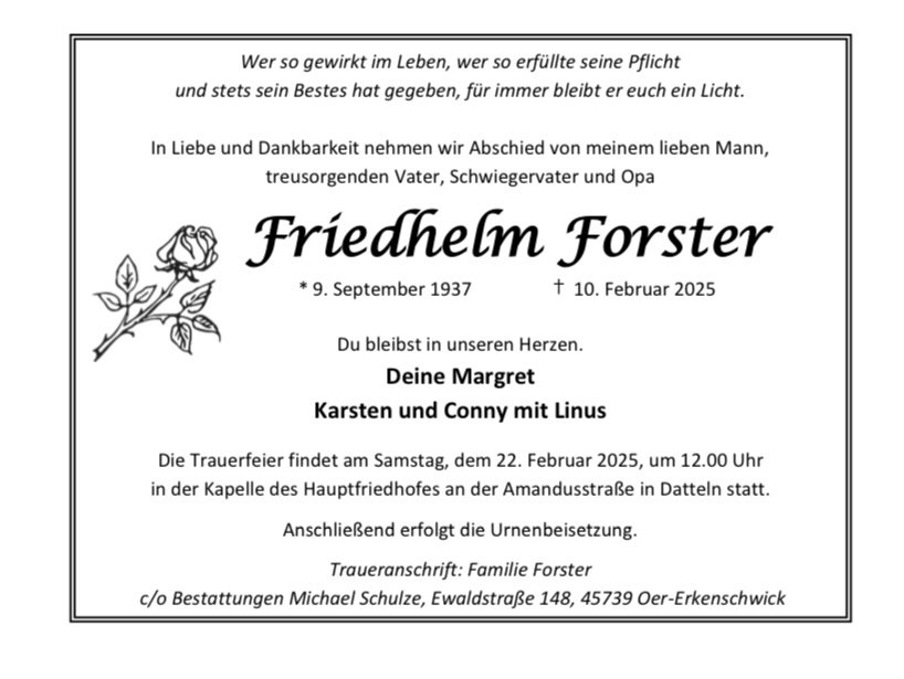 und stets sein Bestes hat gegeben, für immer bleibt er euch ein Licht.