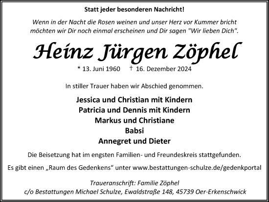 Sprechen Sie im Kondolenzbuch den Hinterbliebenen Ihr Beileid aus und teilen Sie persönliche Gedanken und Erinnerungen mit anderen.