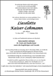 Lieselotte Kaiser-Lehmanngestorben am 7. Oktober 2024