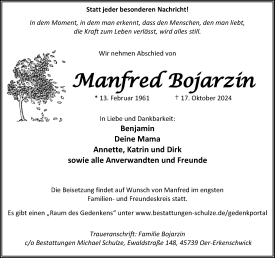 Manfred Bojarzingestorben am 17. Oktober 2024