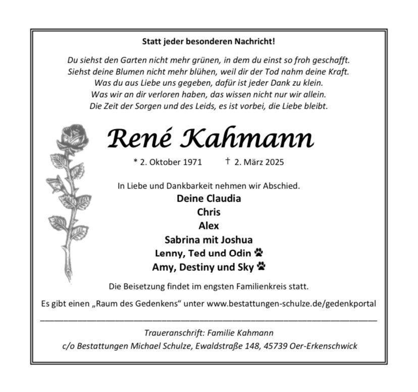 Siehst deine Blumen nicht mehr blühen, weil dir der Tod nahm deine Kraft.